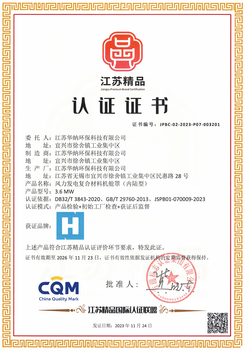 江蘇華納環??萍加邢薰咀溆谌珖h保產業之鄉-江蘇省宜興市,地處滬、寧、杭等距離的中心地帶,交通便利。注冊資本7066.66萬人民幣,公司主要是從事玻璃鋼復合材料、環保設備的設計、開發、制造、銷售于一體的科技型企業,是國家高新技術企業,國家專精特新小巨人企業,主要產品風力發電機艙罩、導流罩,廢氣廢水處理環保設備。